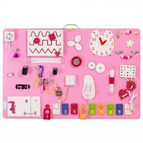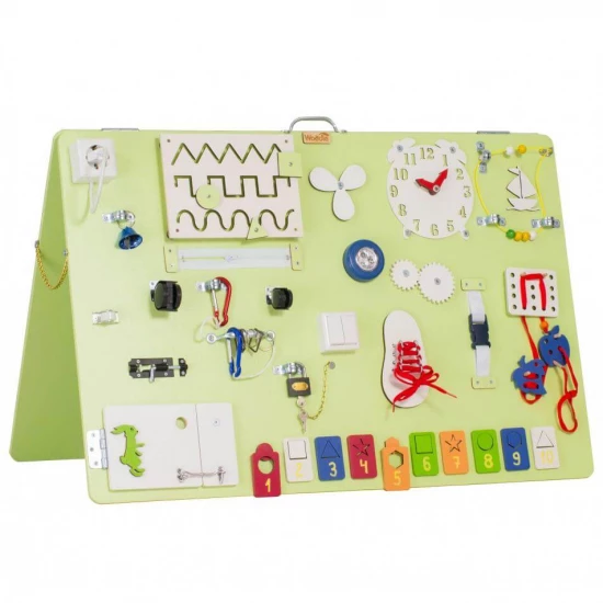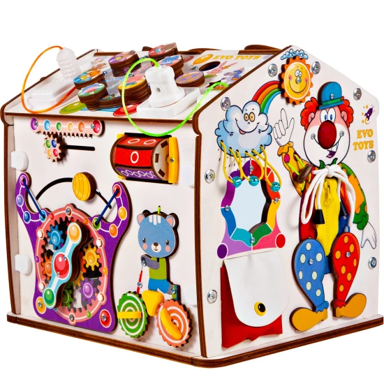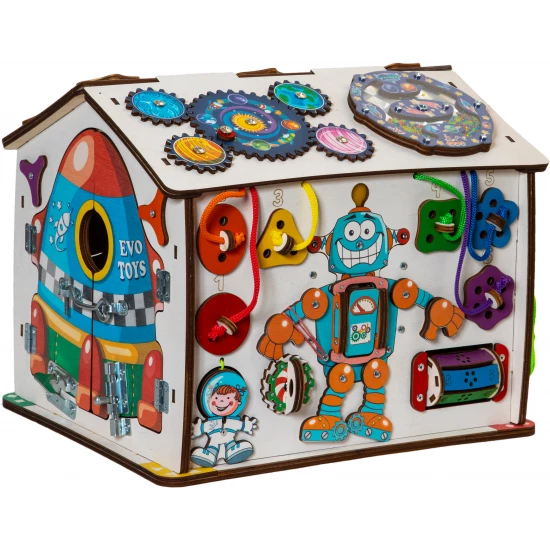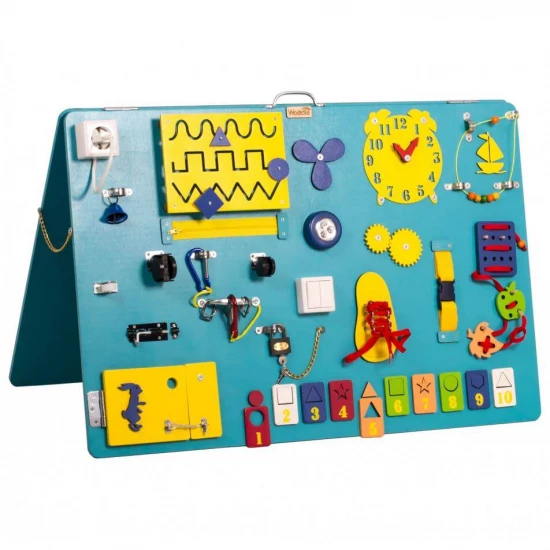 - в отдельных моделях есть доступ к внутреннему пространству, поэтому кроха может использовать бизиборд как игрушечный гараж или домик.