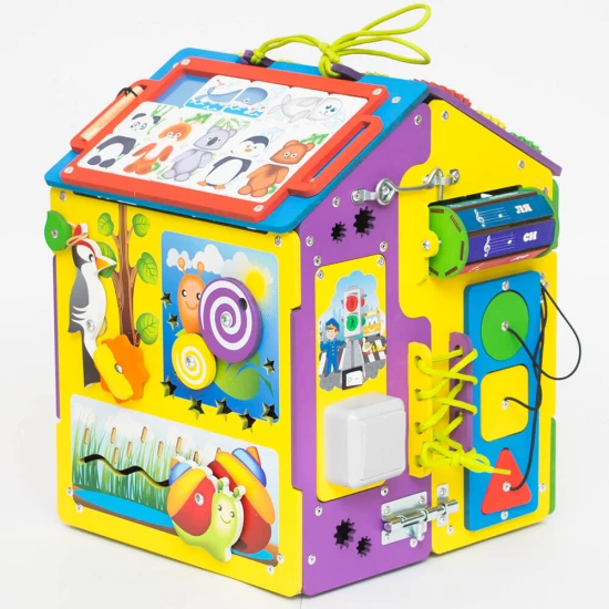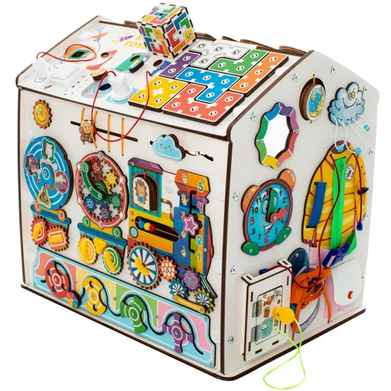 Производители предлагают разные модификации бизибордов с подсветкой: доски, кубики, домики. Поэтому можно подобрать вариант, который точно понравится как мальчику, так и девочке.