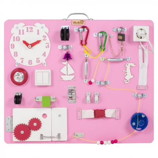 (76 товаров)По мнению психологов, наиболее полезны для раннего развития малыша те бизиборды, в которых все детали по-настоящему работают. То есть ключи опирают замочки, дверцы открываются и закрываются, а выключатели зажигают лампочки. Играя с таким бизибордом, ребенок лучше понимает причинно-следственные связи и учится аккуратно обращаться с бытовыми приборами.
