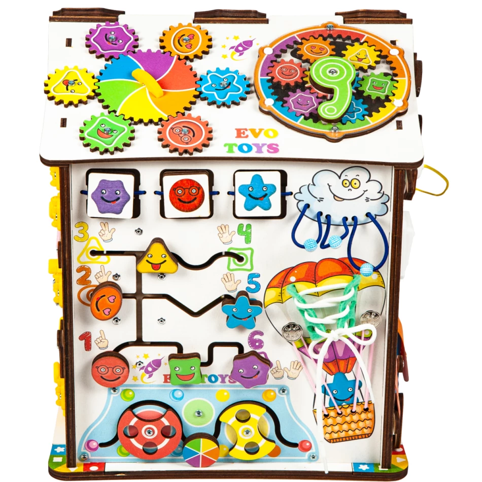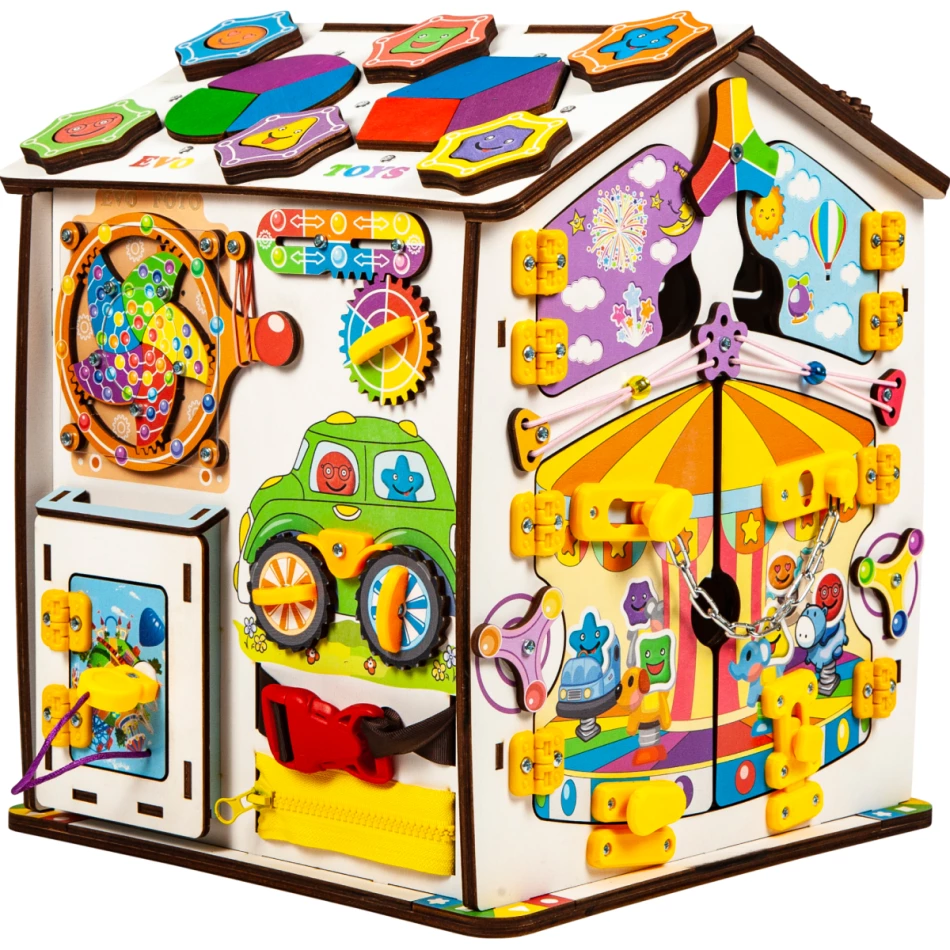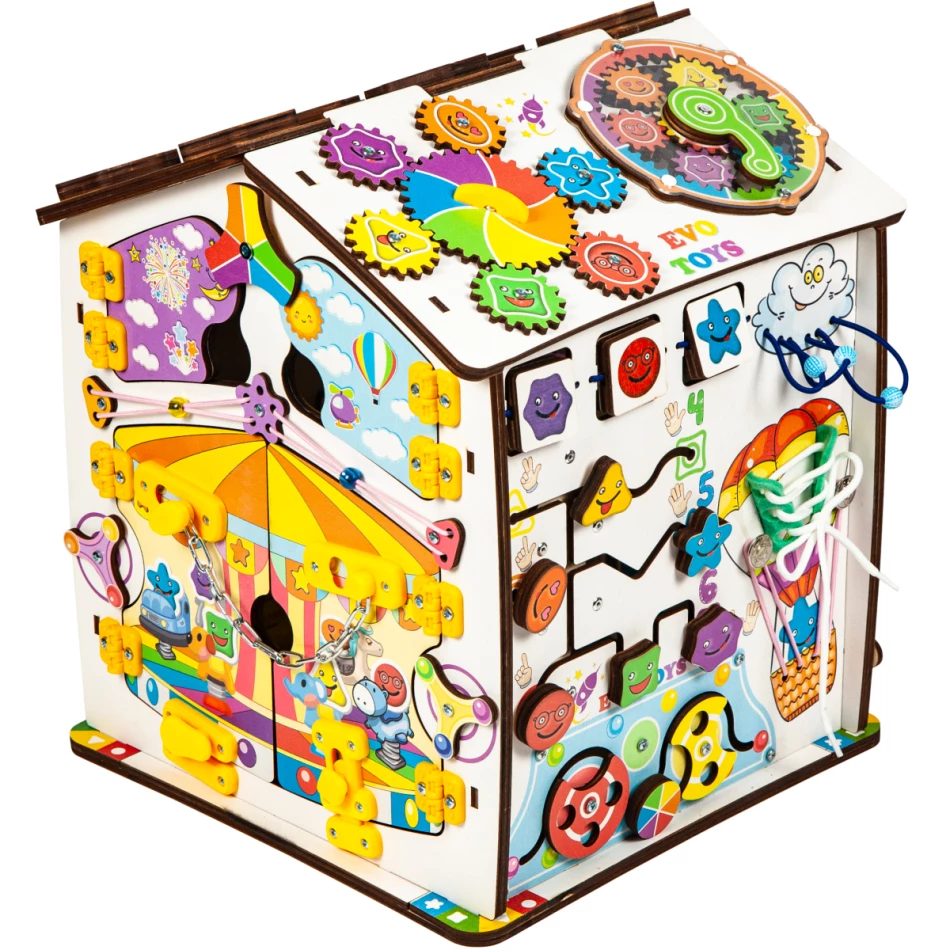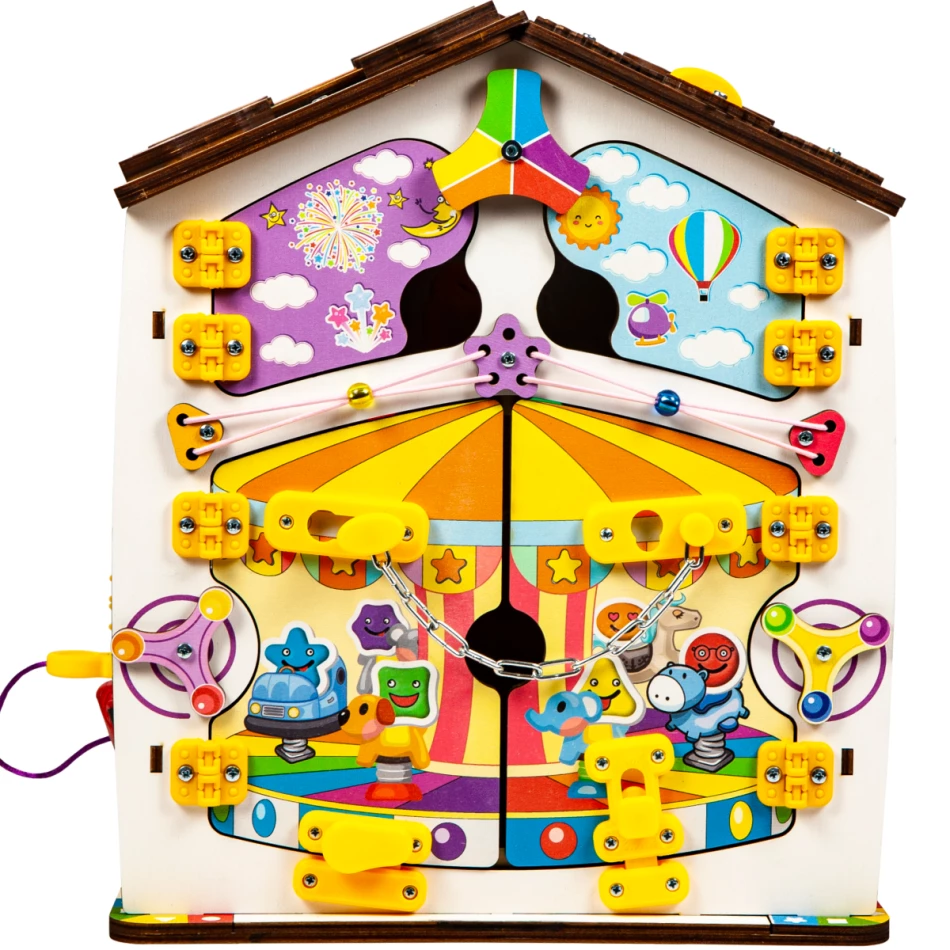 Бизиборд дом развивающий Смайлики на карусели 30х35 см