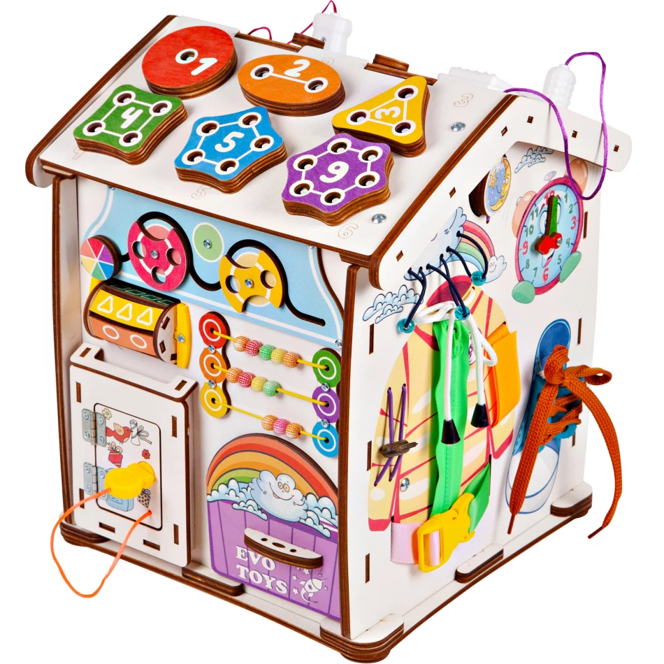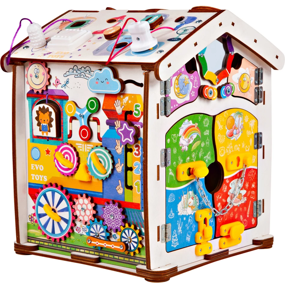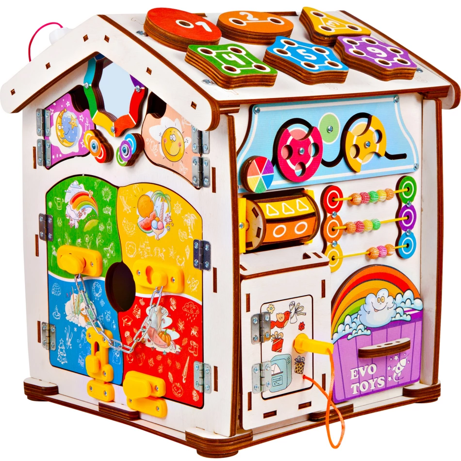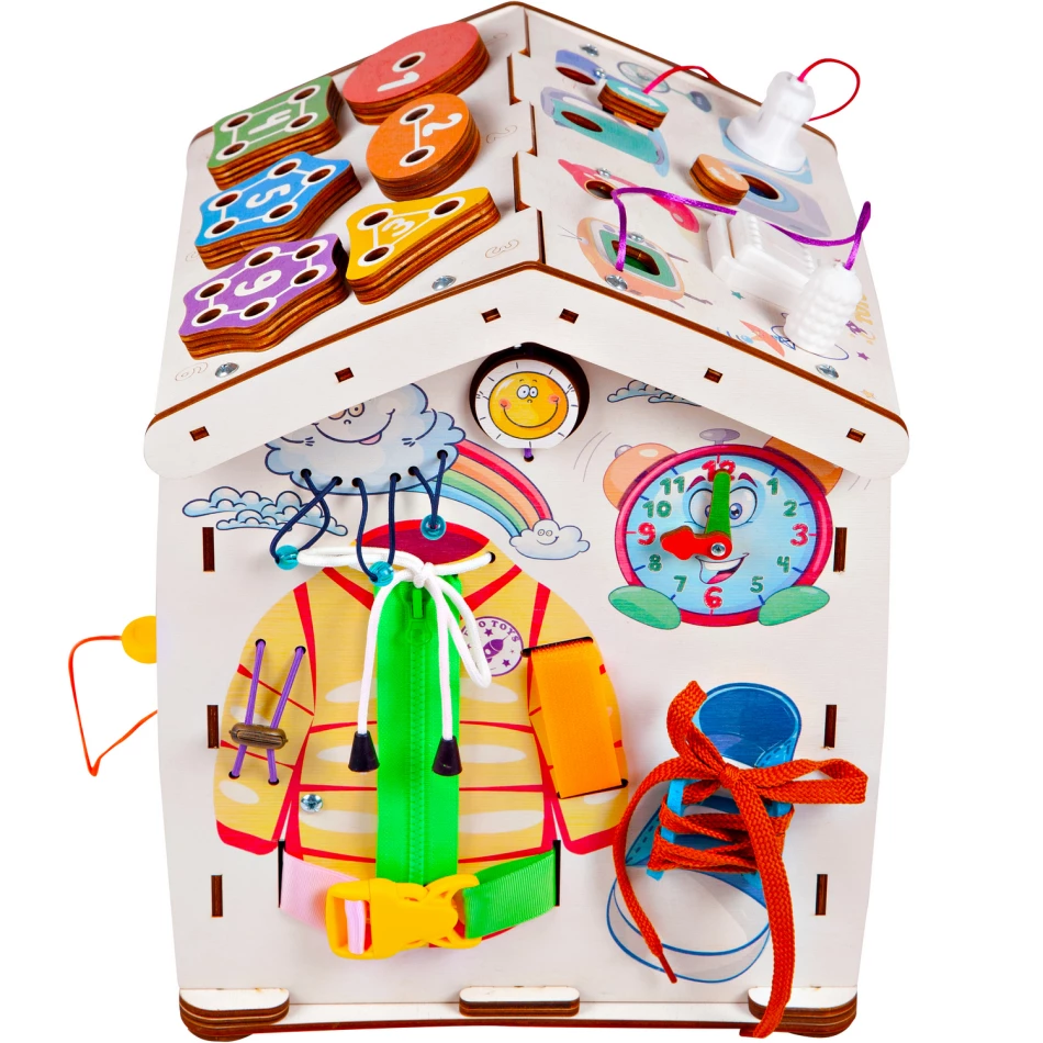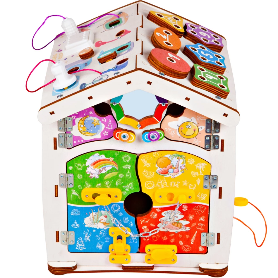 Бизиборд домик развивающий Знайка Радуга 30х35 см вертикальный со светом