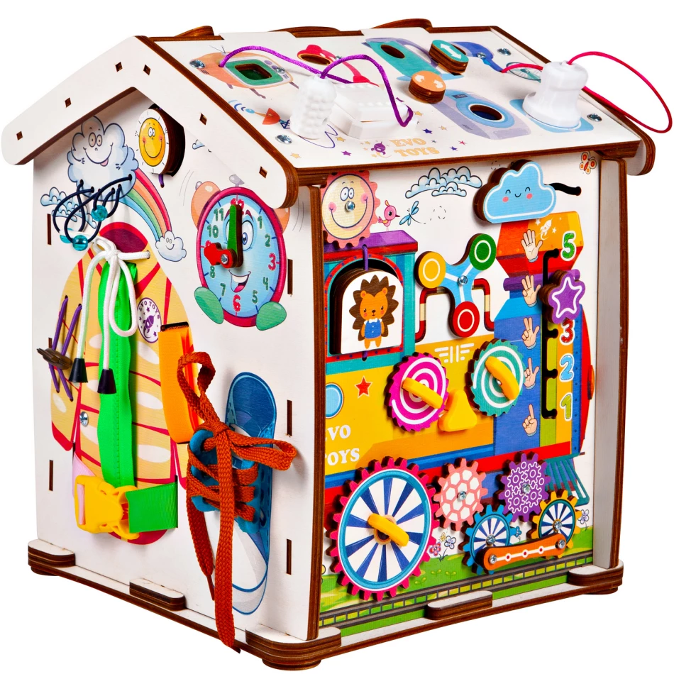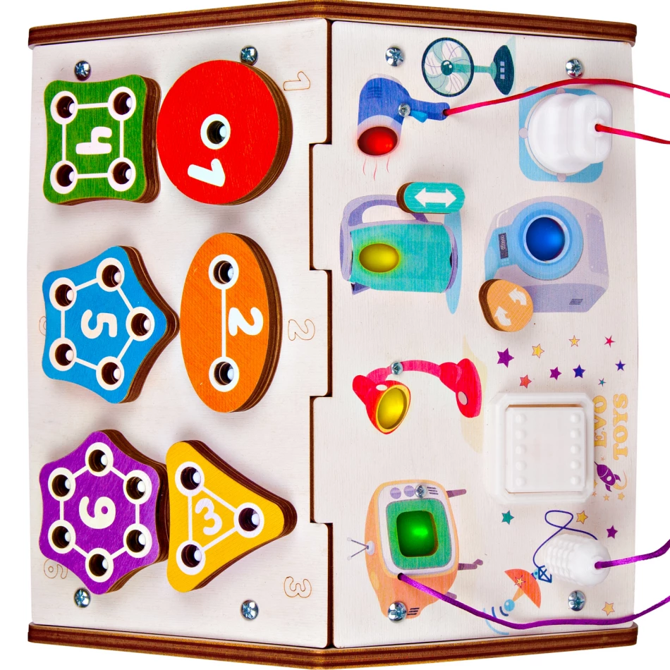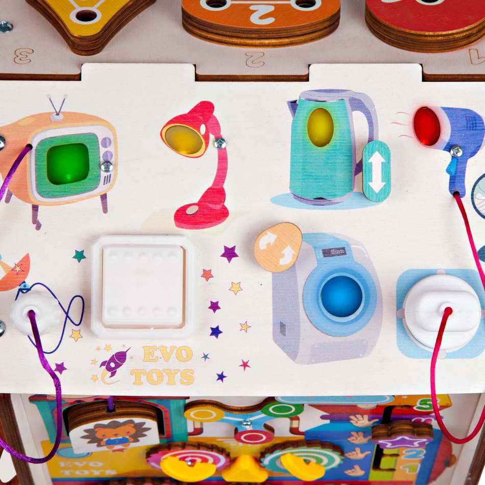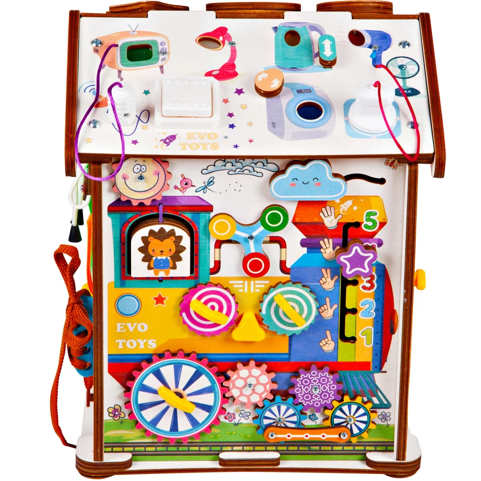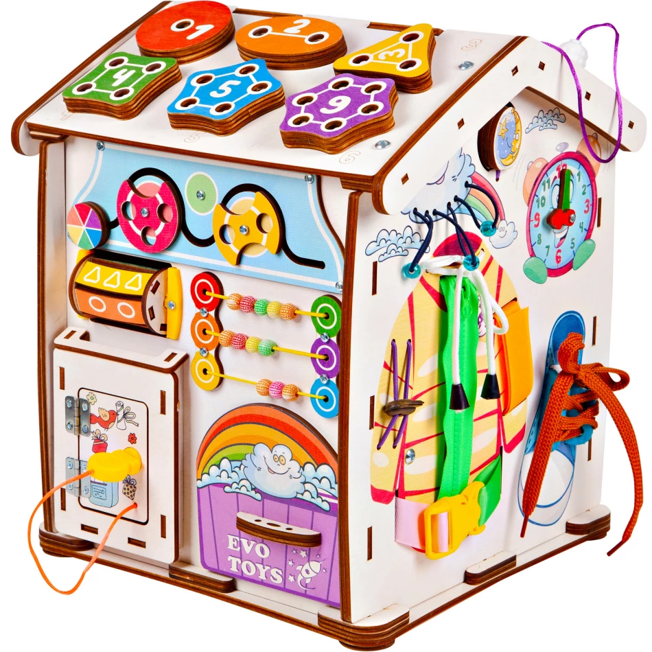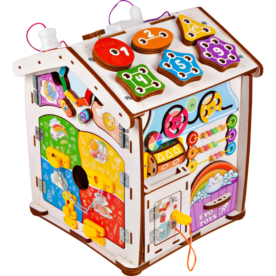 Бизиборд домик развивающий Знайка Радуга 30х35 см вертикальный со светом