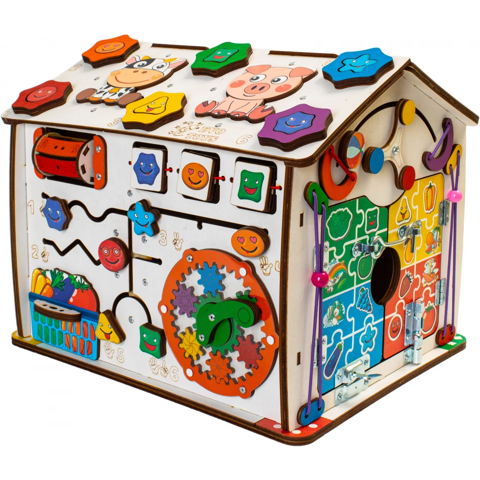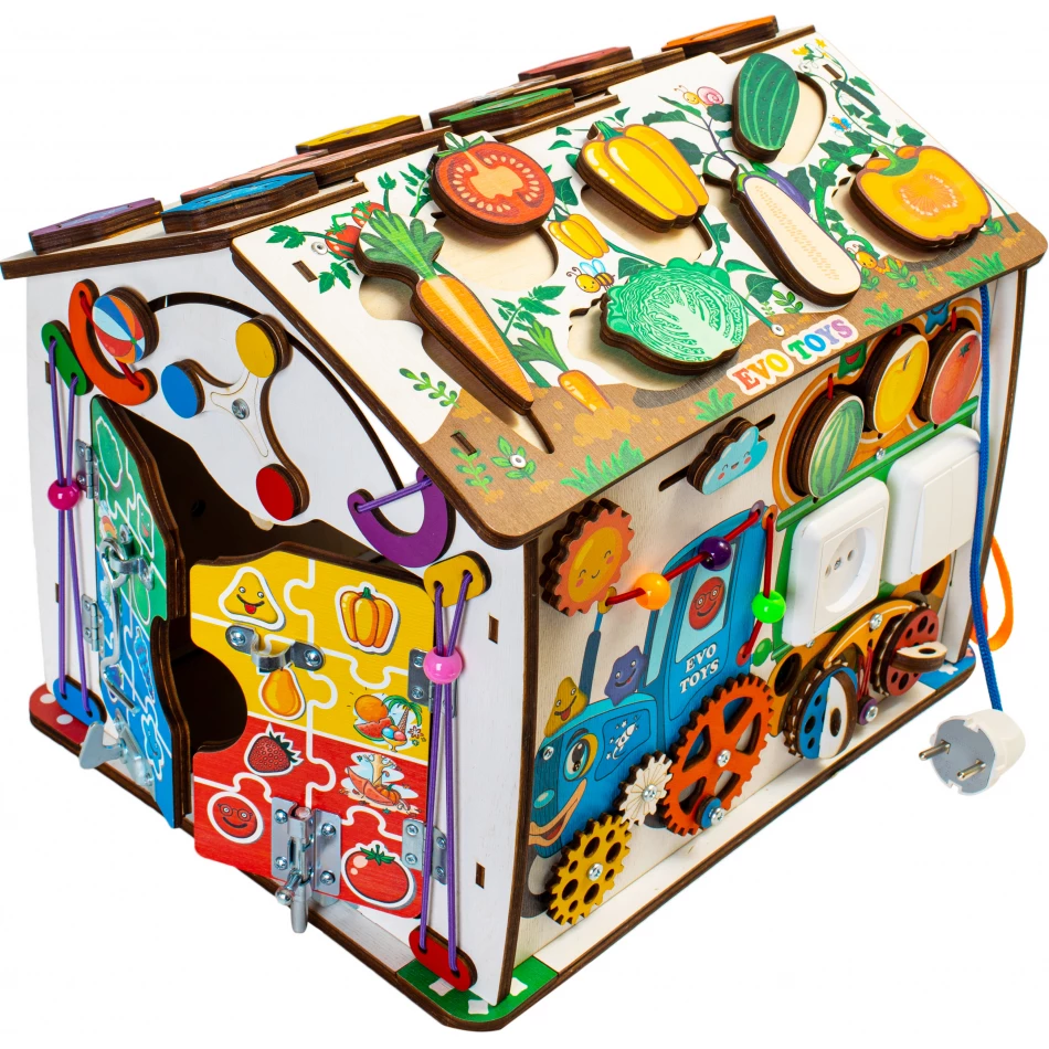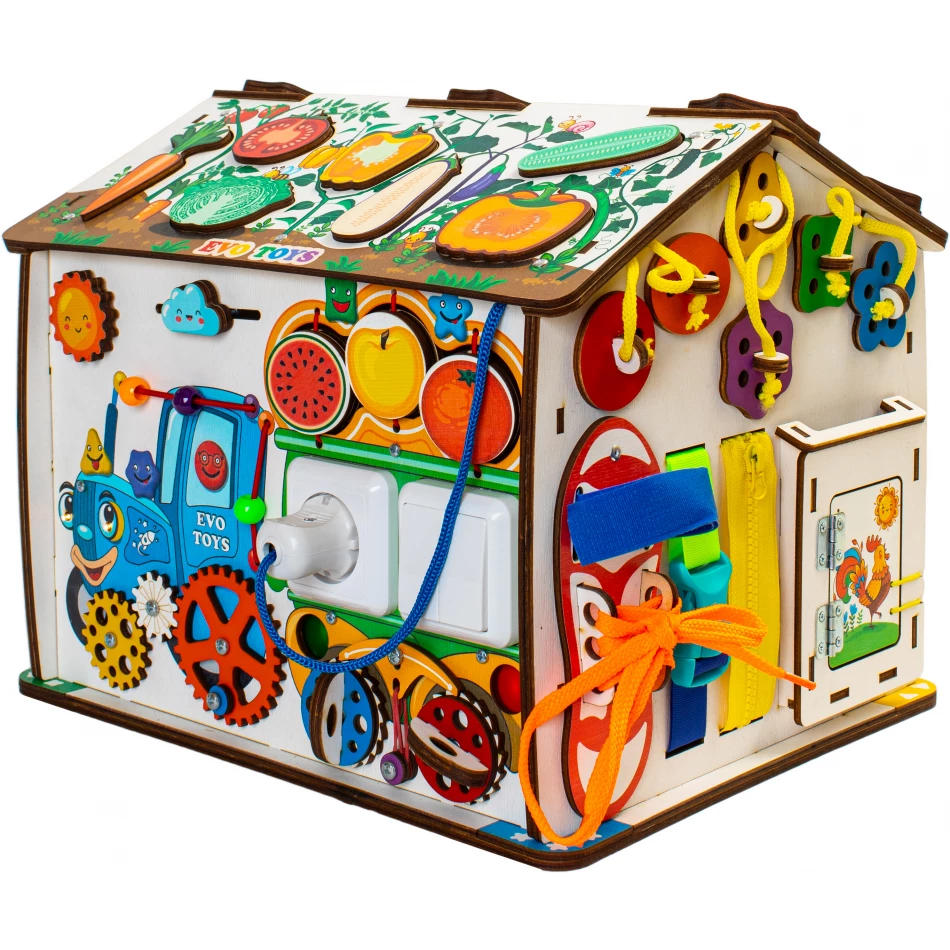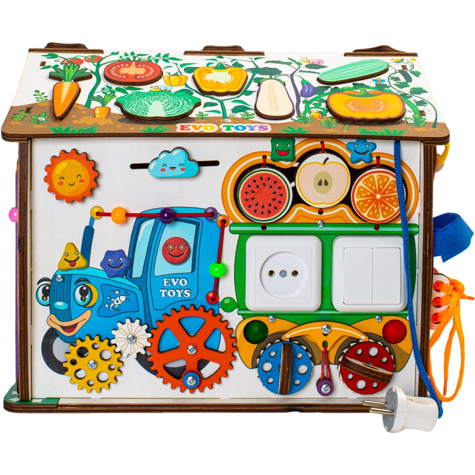 Бизиборд домик Смайлики на ферме со светом 29х35 см