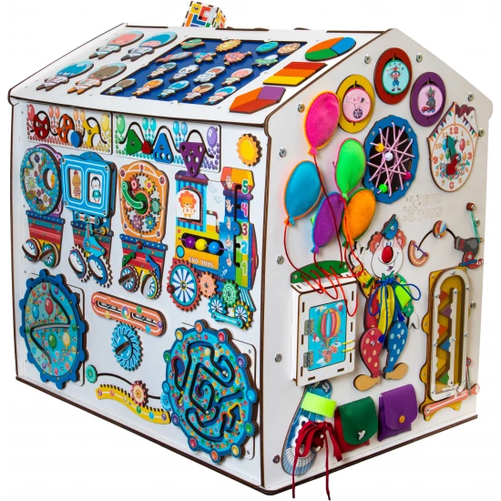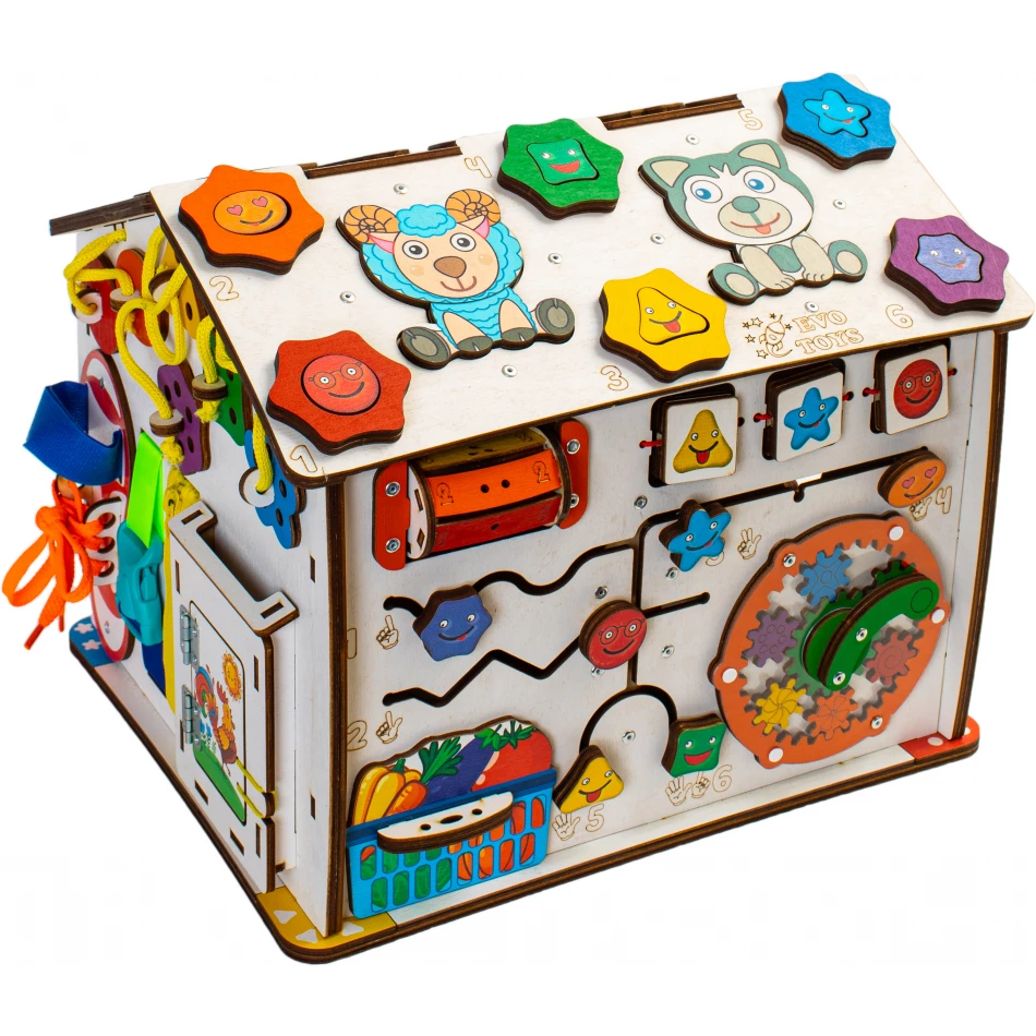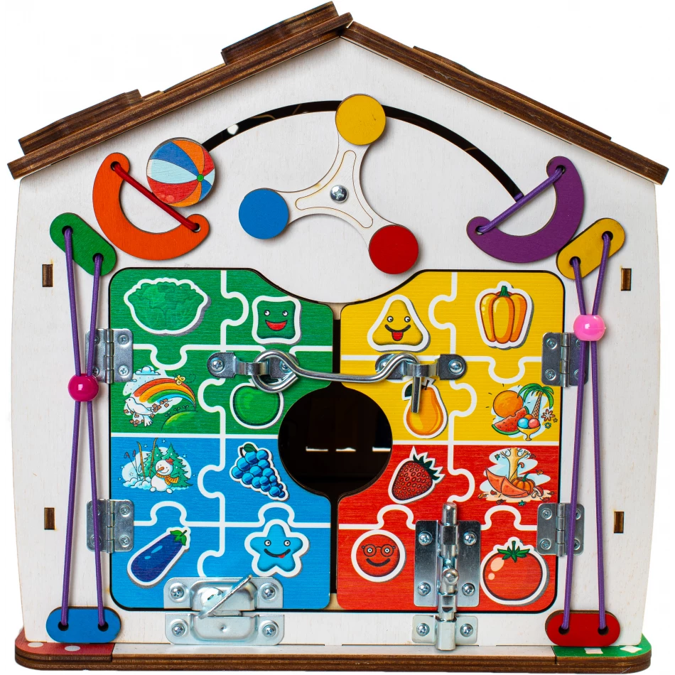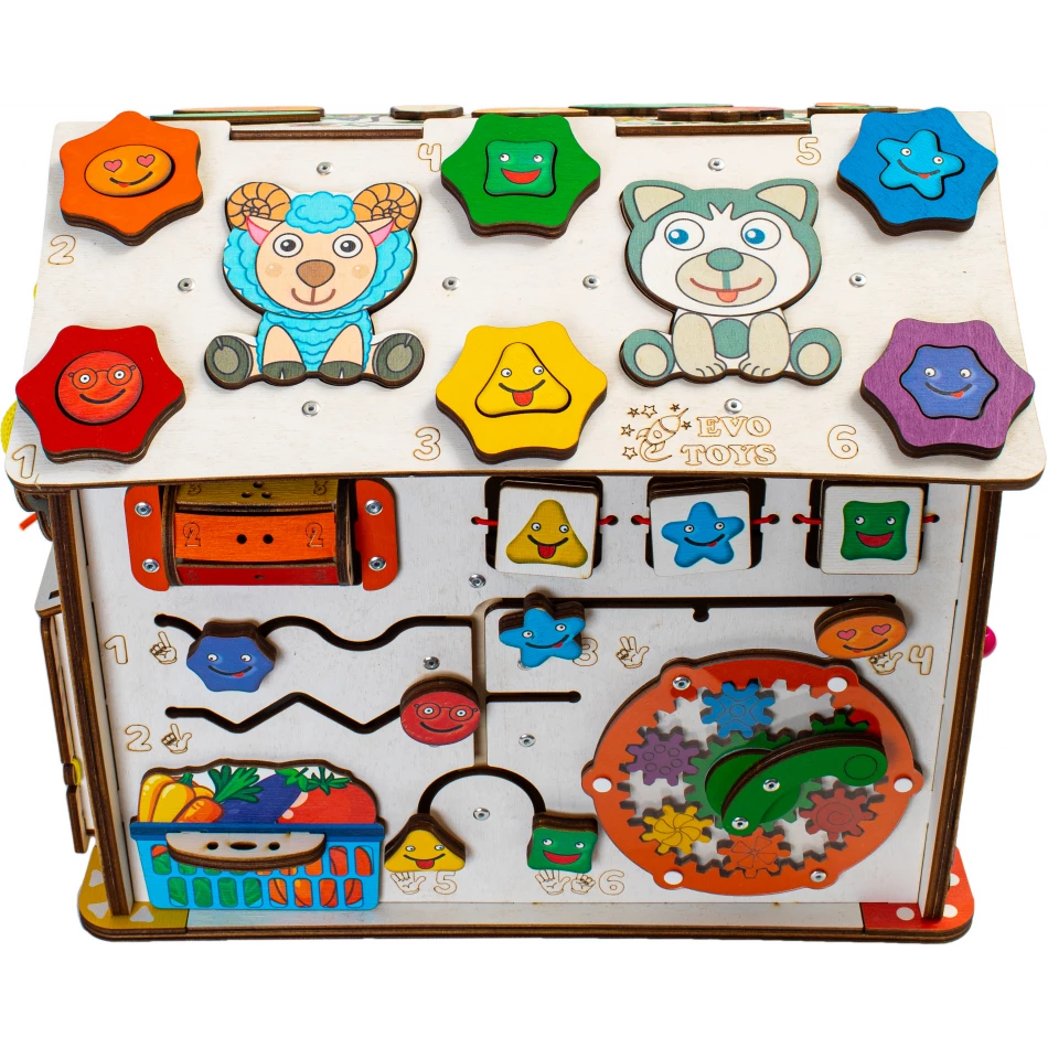 Бизиборд домик Смайлики на ферме со светом 29х35 см
