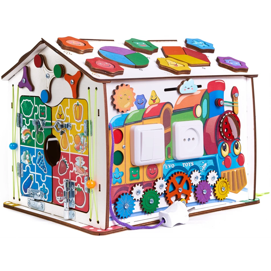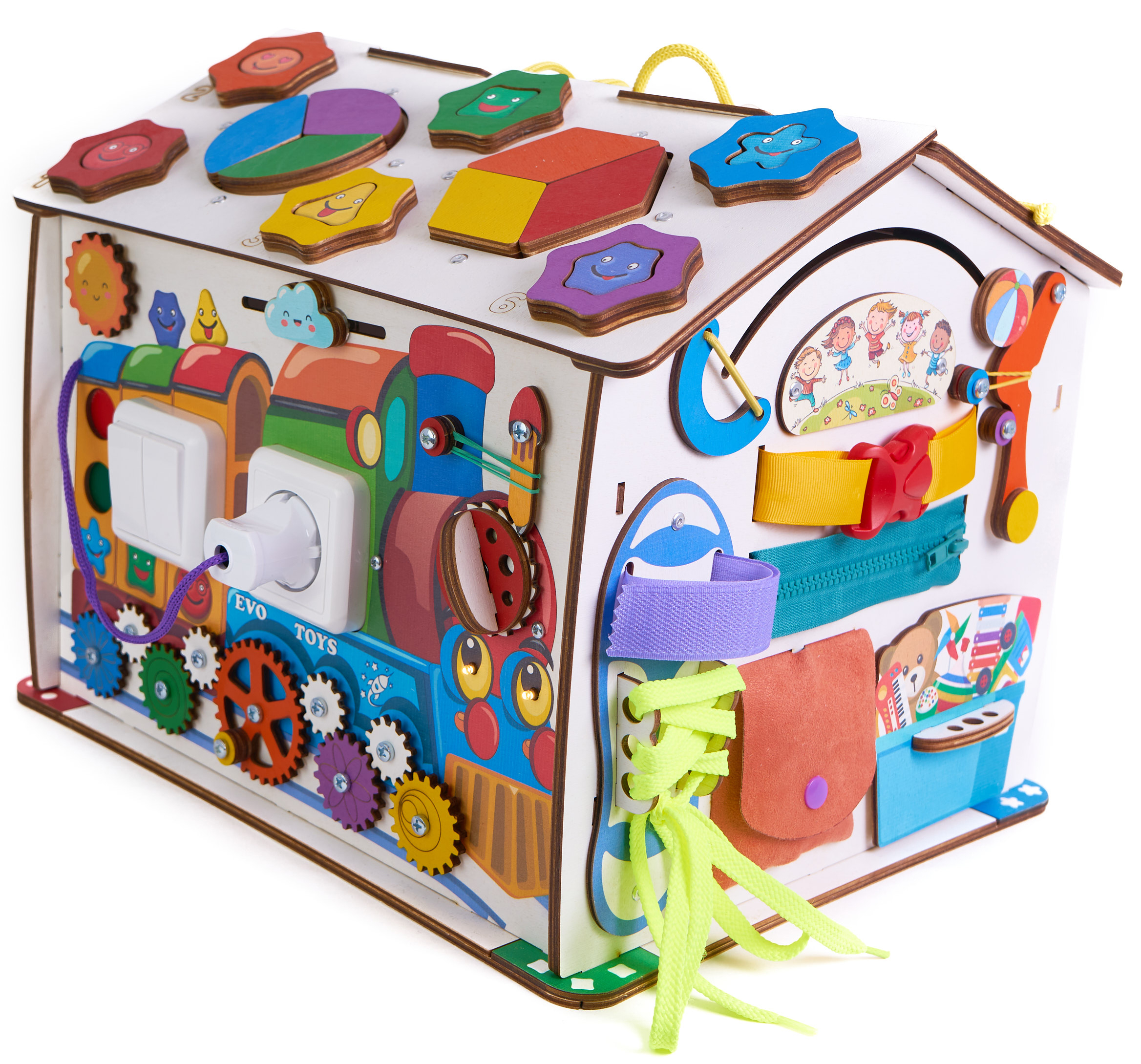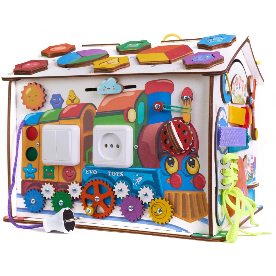 Бизиборд домик Смайлики на паровозике 29х35 см со светом