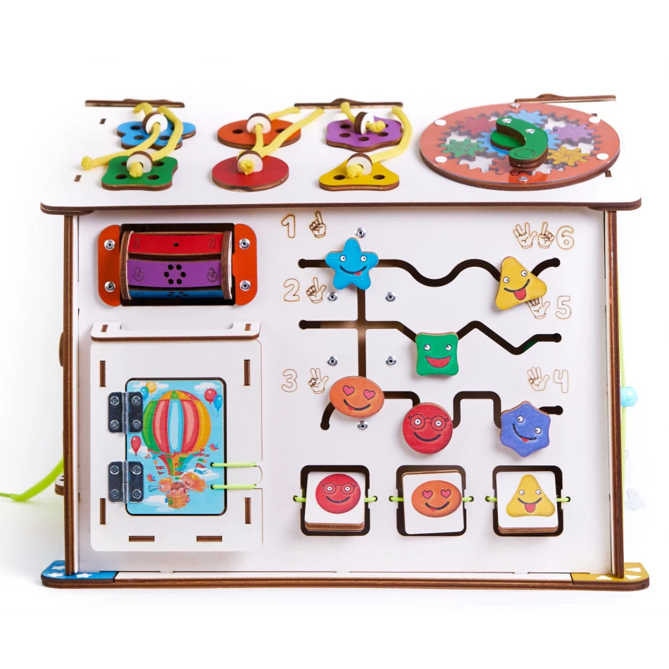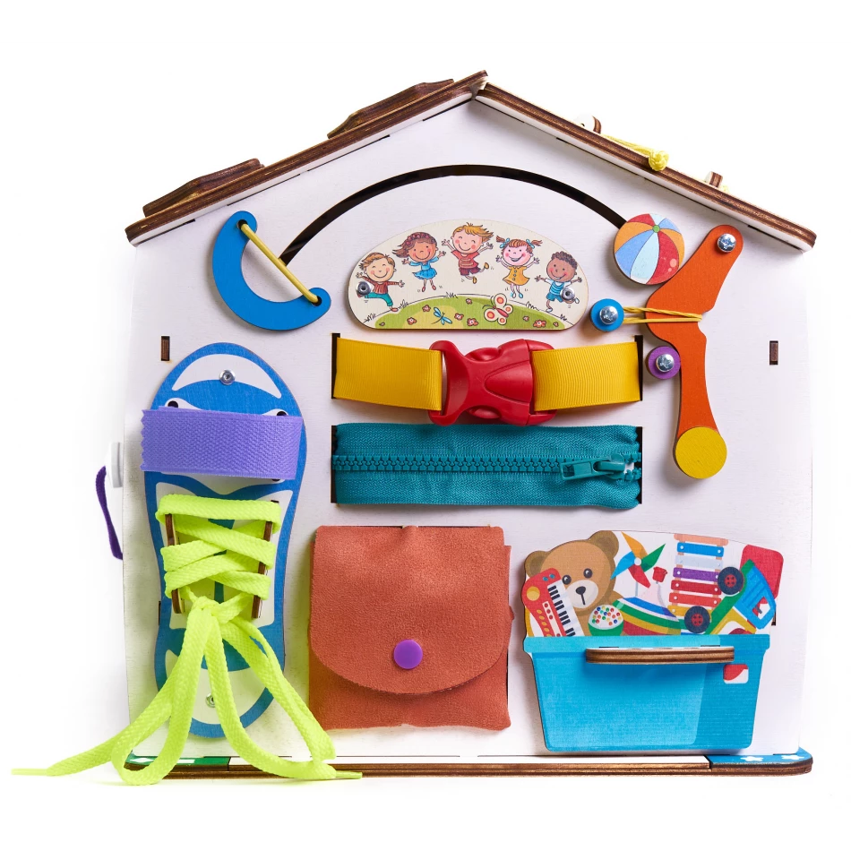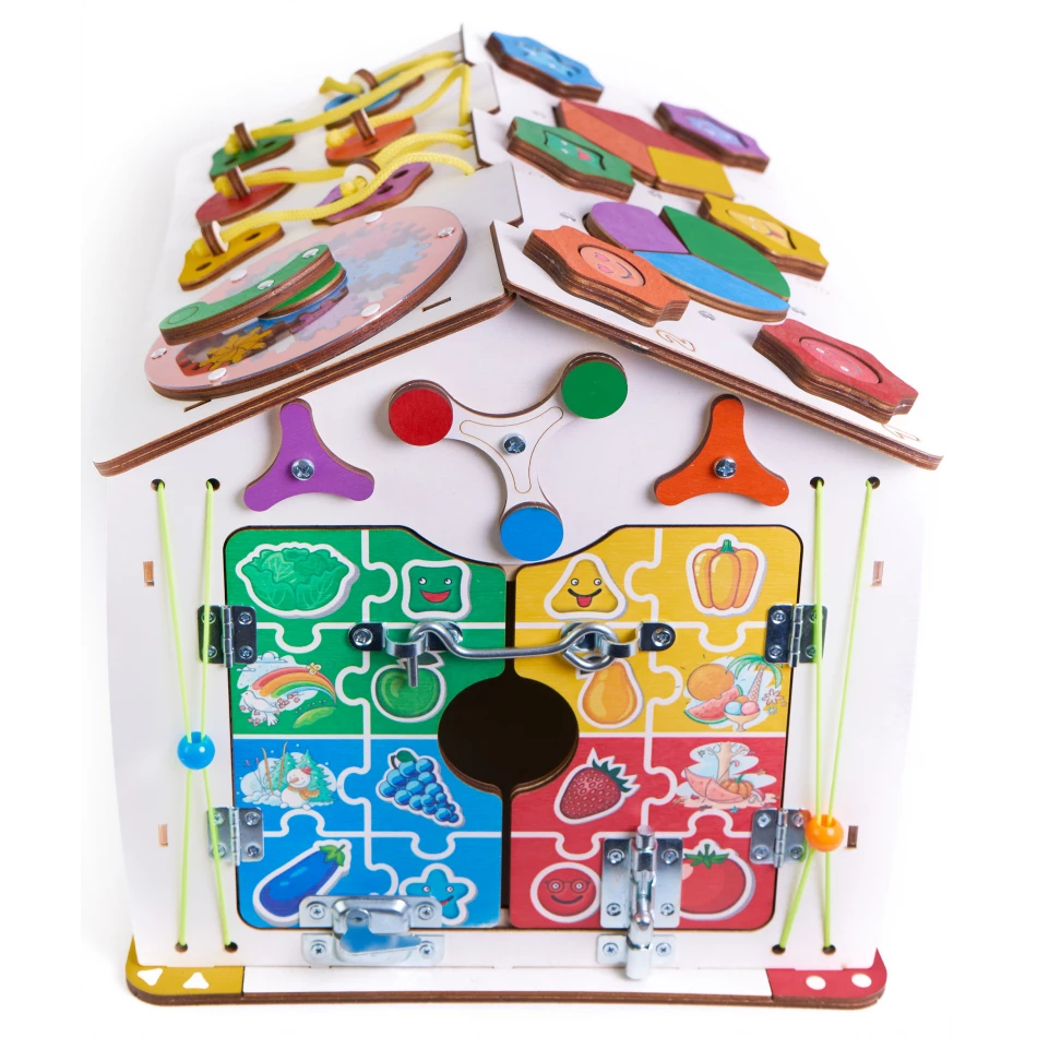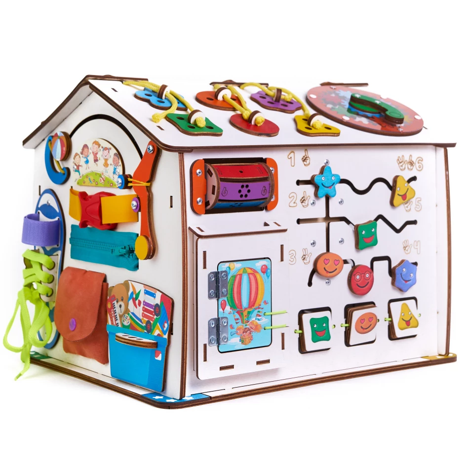 Бизиборд домик Смайлики на паровозике 29х35 см со светом