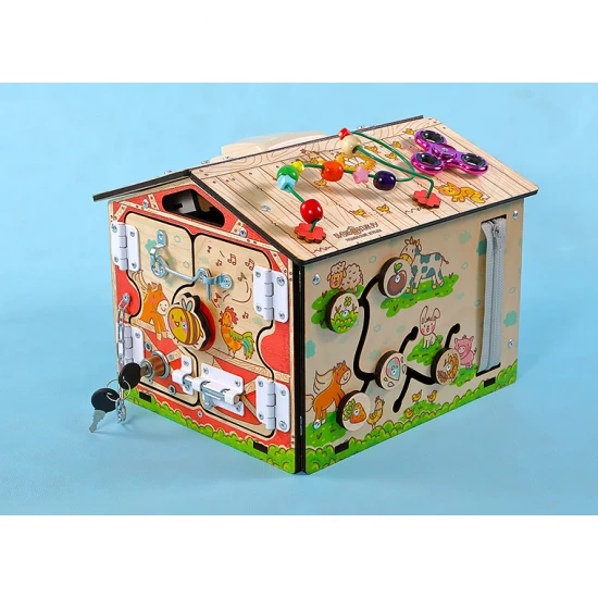 - оснащенные самыми интересными для детей предметами: одежной фурнитурой, шестеренками, дверцами с замками, лабиринтами.