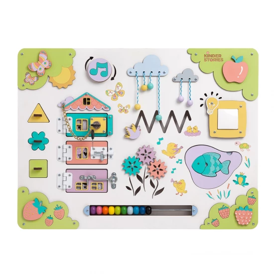 А еще с помощью такой бизидоски можно создать в детской комнате полноценную игровую зону, которая будет занимать очень мало места, ведь игрушка просто крепится на стену.