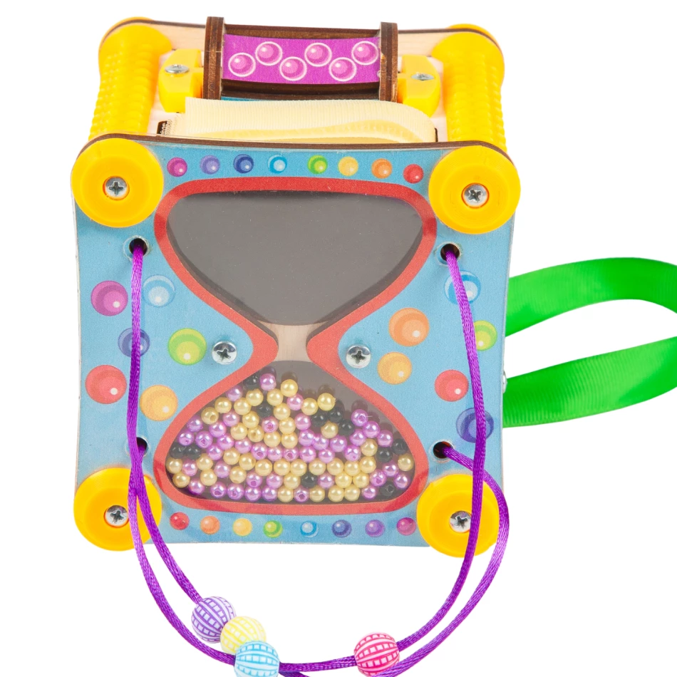 Бизикубик развивающий Песочные часы, дорожный 10х10 см